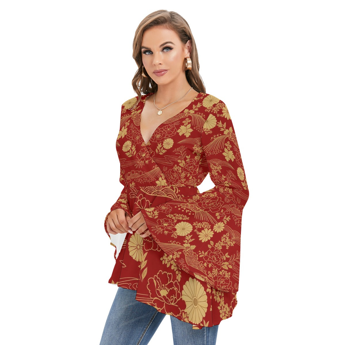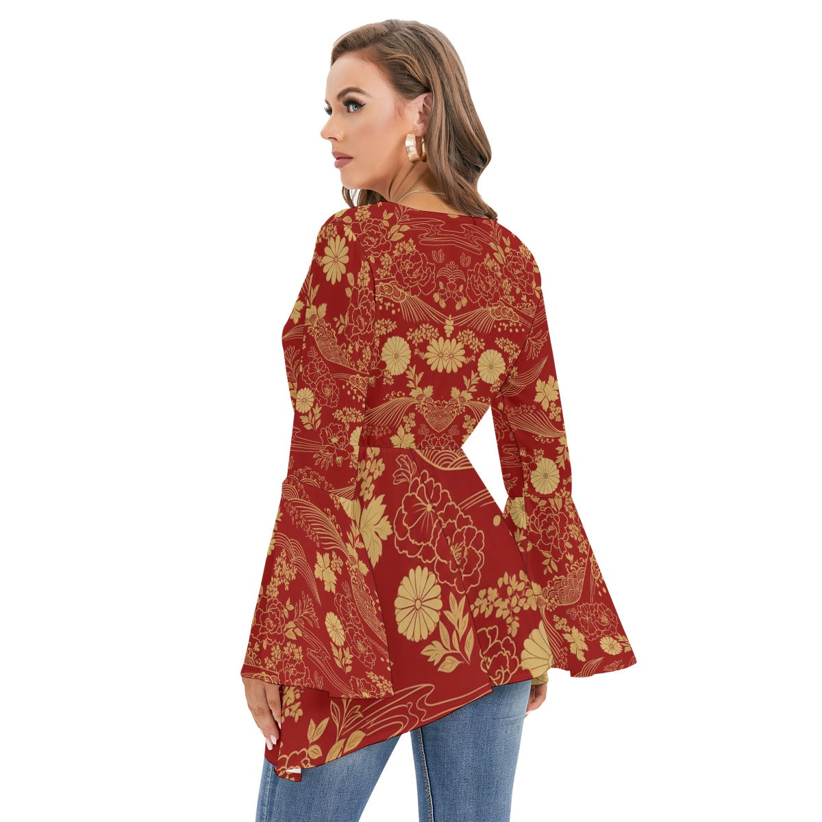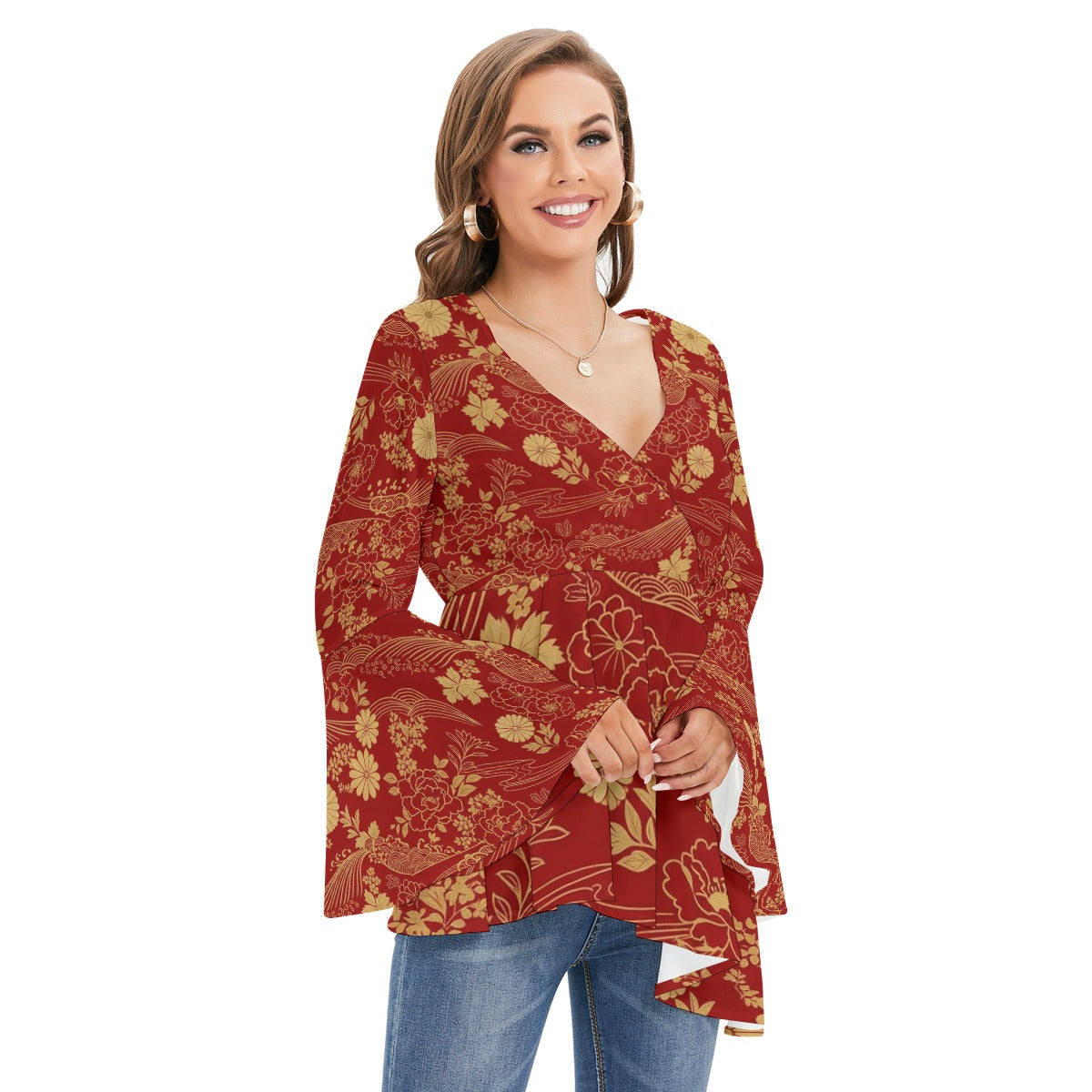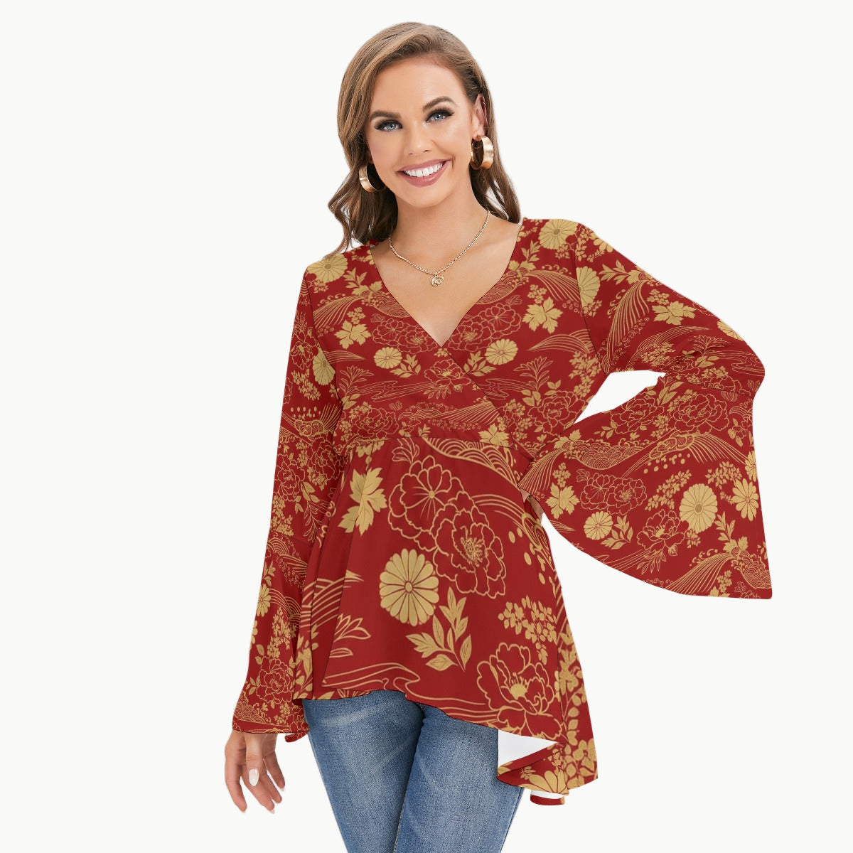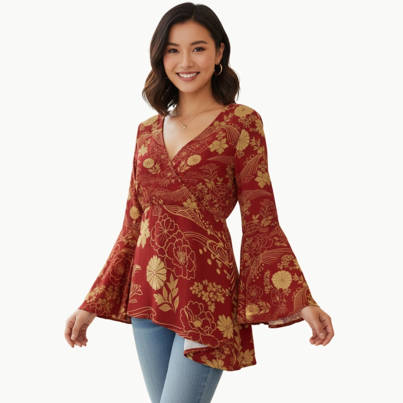 - V-neck with flared sleeves